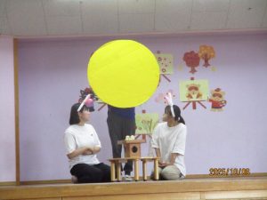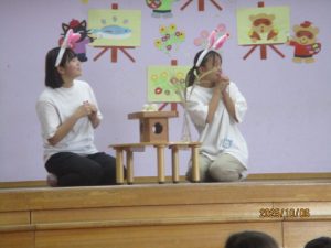 お楽しみでは先生たちによる劇「お月見かざるの何だっけ?」を見ました。