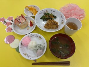 まだまだ寒いですが、献立は春を感じるメニューに。デコポン、東京うど、かぶ、菜の花、新玉ねぎ、鯛は春が旬の食材。なかでも春を告げる鯛のアラを使った潮汁はとても贅沢な仕上がりでした!お魚屋さんがたくさんアラを持ってきてくれて、本来ならすてられてしまう部分も美味しい出汁となり、上品な春の香りがする潮汁になりました✨いつもとは違う出汁の香りに気づいたのか、何杯もおかわりする姿も見られました😊