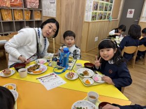 まだまだ寒いですが、献立は春を感じるメニューに。デコポン、東京うど、かぶ、菜の花、新玉ねぎ、鯛は春が旬の食材。なかでも春を告げる鯛のアラを使った潮汁はとても贅沢な仕上がりでした!お魚屋さんがたくさんアラを持ってきてくれて、本来ならすてられてしまう部分も美味しい出汁となり、上品な春の香りがする潮汁になりました✨いつもとは違う出汁の香りに気づいたのか、何杯もおかわりする姿も見られました😊