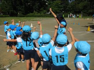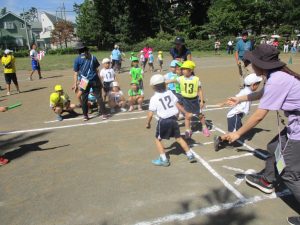作戦会議をして次の勝負に臨みます!4位だったチームが特別コーチの小野田先生のアドバイスを受けて2位へ!!リレーはバトンの受け渡しとチームワークが勝負の鍵!!毎回、順位が違い、子どもたちも大人も白熱します!さあ、今年は、どんなドラマが生まれるでしょうか?