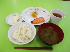 給食でも、十五夜にちなんだメニューで秋の味覚を楽しんでもらいました。