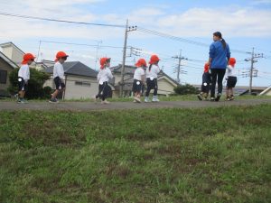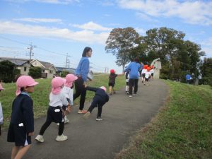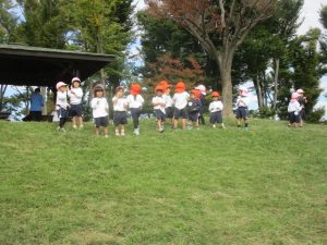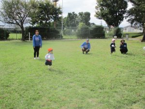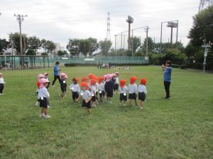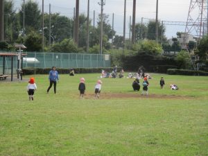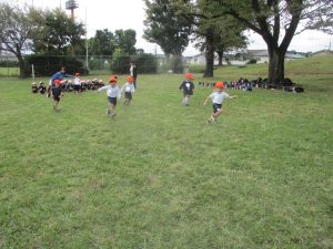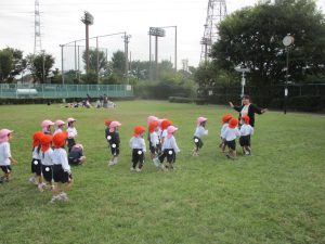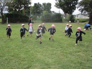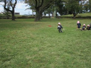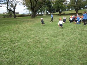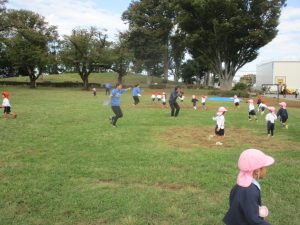 最後に担任が鬼になり、皆で広い原っぱを思い切り、駆け回りました!