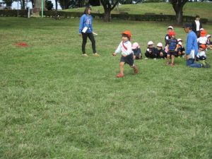 その後、リレーの説明を聞いて、クラス対決リレーをし、今日はもも組の勝ち!