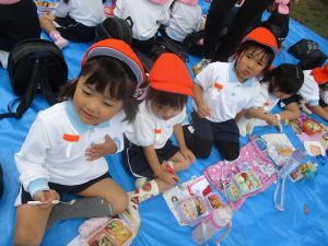 沢山遊んで「お腹もすいた~」という声も聞かれ、楽しみにしていたランチタイム!お家からのお弁当を嬉しそうに美味しそうに食べていましたよ~