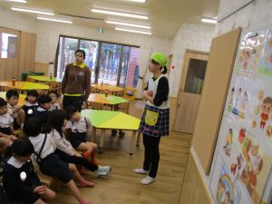 今日は、年長さんに食物アレルギーについてお話をしました。もともとアレルギー体質のお友達は食べたくても食べられない体質であることや、大人になってからアレルギー体質になる人もいることを話しました。同じものを食べすぎてもアレルギー体質になることがあるため、バランス良くたべることが大切だと話しました。