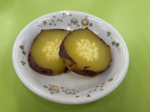 今年の収穫したさつまいもの品種は、紅あずまとシルクスイートの2種類。ホイルに包んでじっくりと園長先生が焼いてくれました🍠