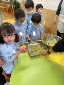 年中のさつまいもクッキングでは、いもようかん作りに挑戦しました。