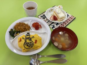 今月のお誕生会は、オムライスに海苔アートでクリスマスの雰囲気を作ってみましたよ。