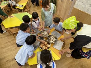 今日の為に、9.10.11月生まれの年長さんに、秘密のお手伝いをしてもらいました。