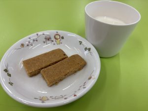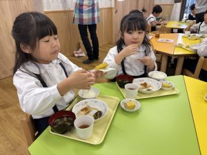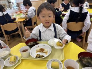 焼き上がったスイートポテトは、きれいな黄金色!ひと口食べると「甘くて美味しいよ」「柔らかい!」と声が上がり、ほとんどの子が完食していました。スイートポテトから先に食べる子、給食を食べ終えてから最後のお楽しみに取っておく子など、食べる順番もそれぞれでした😊