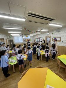 クッキングが始まる前に、まずは手順の説明をしながら、絵本を使って「さつまいものどこの部分を食べているのか?」などを確認しました。自分たちで掘ったさつまいもということもあり、子どもたちは興味津々で話を聞いてくれました😊