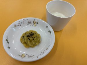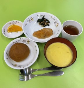 1月27日の献立 2026年01月27日 ・かぼちゃパン ・豆乳コーンスープ ・チキンのオーロラ焼き ・春菊とちくわのソテー ・フルーツ(オレンジ) ・ほうじ茶 ・スイートポテト ・飲むヨーグルト 一覧へ戻る