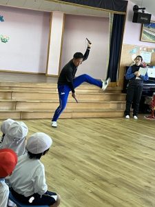 先生たちの中にも挑戦者が!!大井先生は二重跳びを目標50回!を見事達成し、体育指導の小野田先生は、色々な技を見せてくれました。