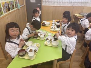 いざ食べてみると、「いつものお味噌汁と色が違う!」「なんだかいつもより甘い!」「すごく美味しいね😋」と、子どもたちからたくさんの感想が聞こえてきました。自分たちで作ったお味噌の味は、特別だったようです。