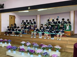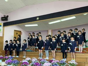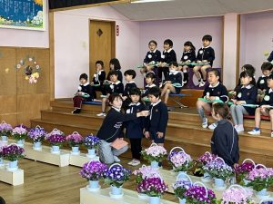 今日は、年長組が午後の時間、ありがとうコンサートを開いてくれました。幼稚園最後のメロディオン演奏、歌を皆で聴きました。
