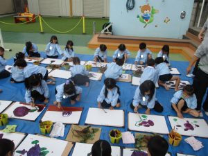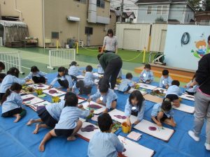 絵の具を使ってダイナミックに芋の絵を描きました!