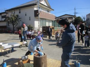 厳しい寒さが予想されていましたが、暖かい日差しの中、お餅つきが出来ました!